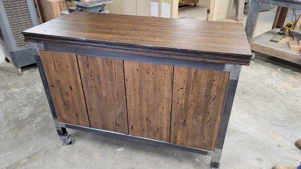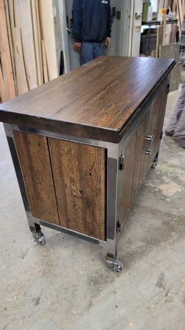Vintage Reclaimed Lumber has released their first project with our new Butcher Block Oak and it's a beauty. Using their professional craftmanship and the versatility of this wood they have created this new piece utilizing the character and quality you would expect from true professionals. Call us today and we can send you a sample for you to see and feel the unique quality of this new line.